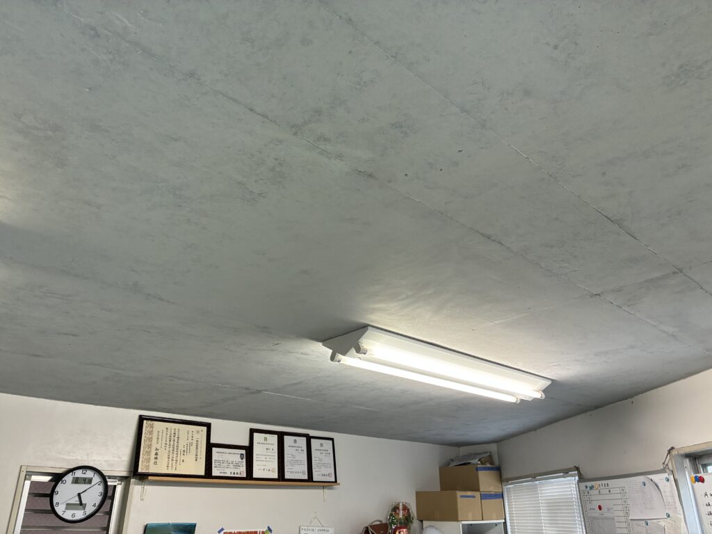 今までは、白一色の壁でしたが今回は、まごころ塗想の新しい取り組みとして【エイジング塗装】のコンクリート打ち放し風塗装をおこないました!!