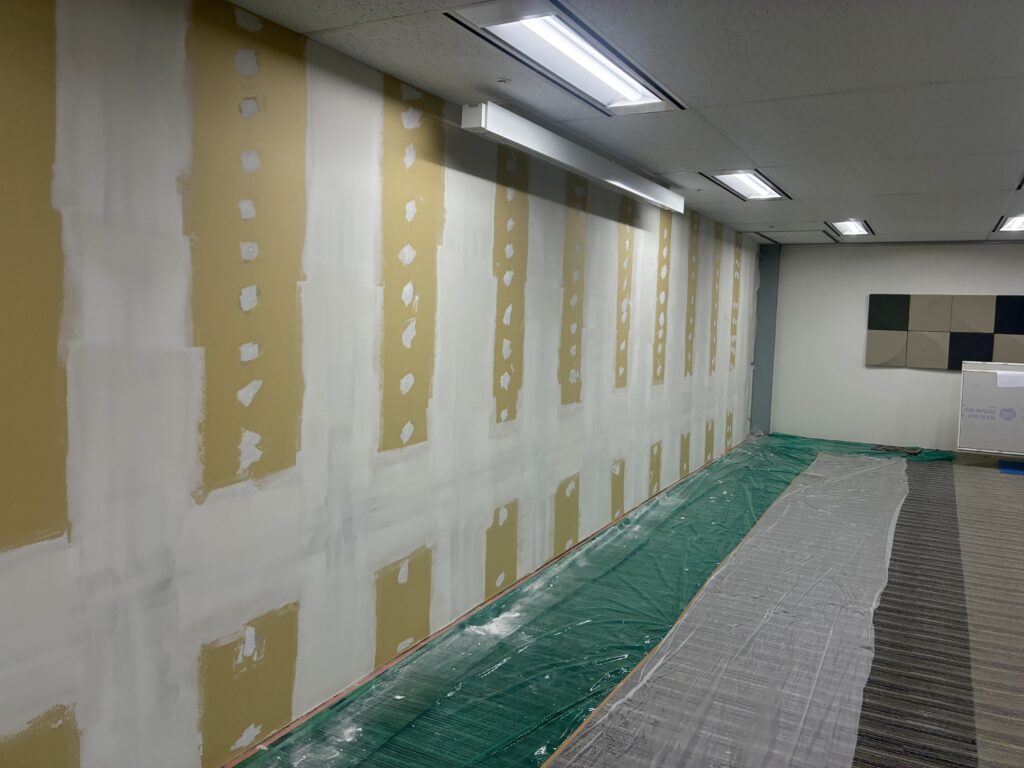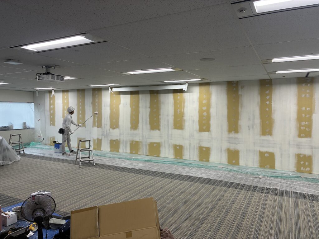 昨日から着工しました店舗内部塗装工事は、休日返上で本日(日曜日)も作業させていただきました。