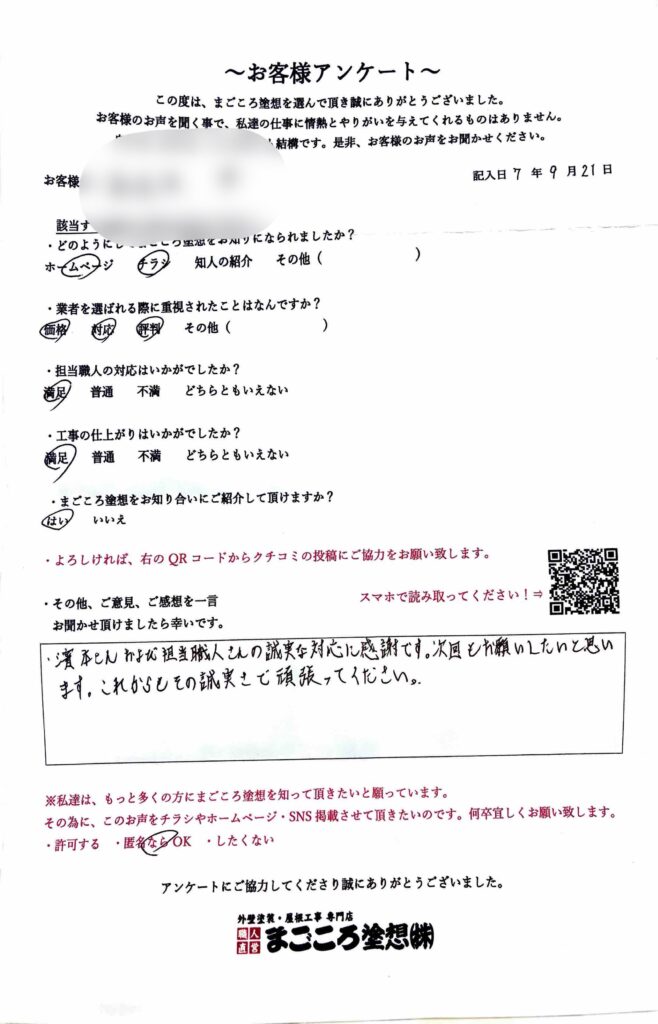まごころ塗想の口コミ評判~お施主様からのお声~