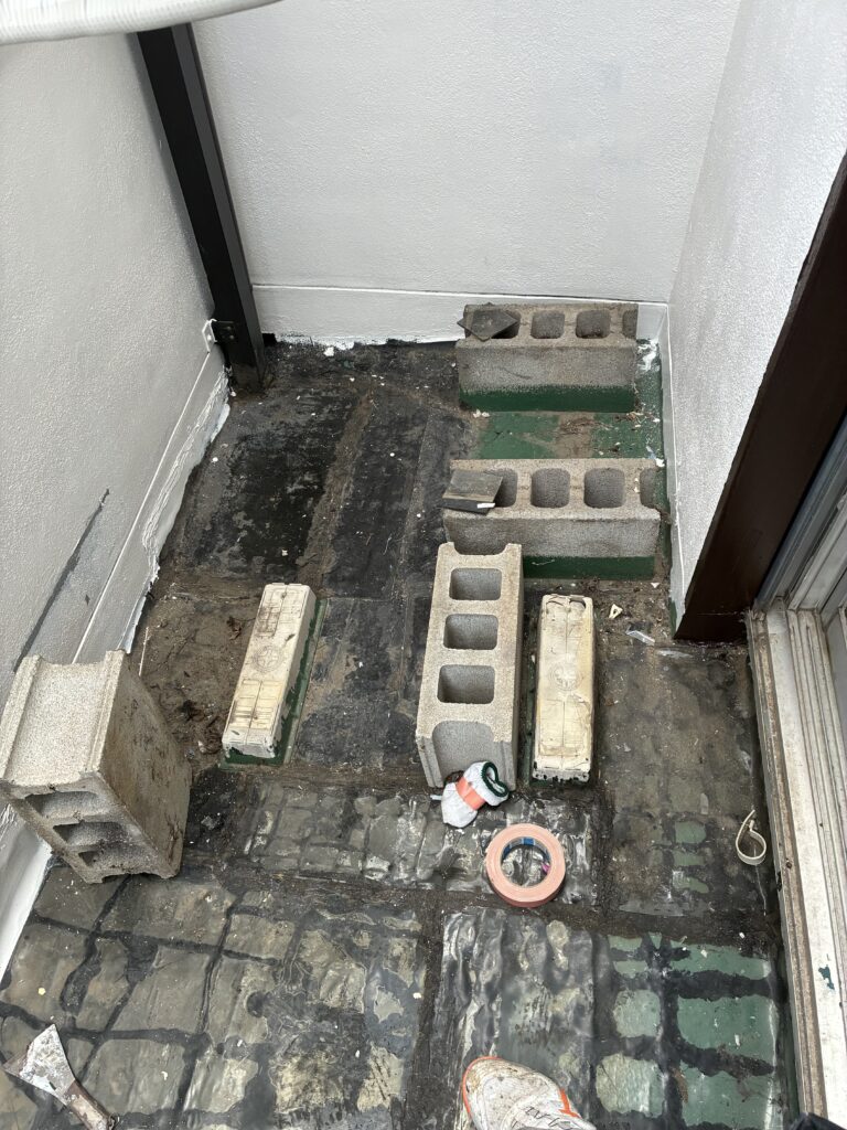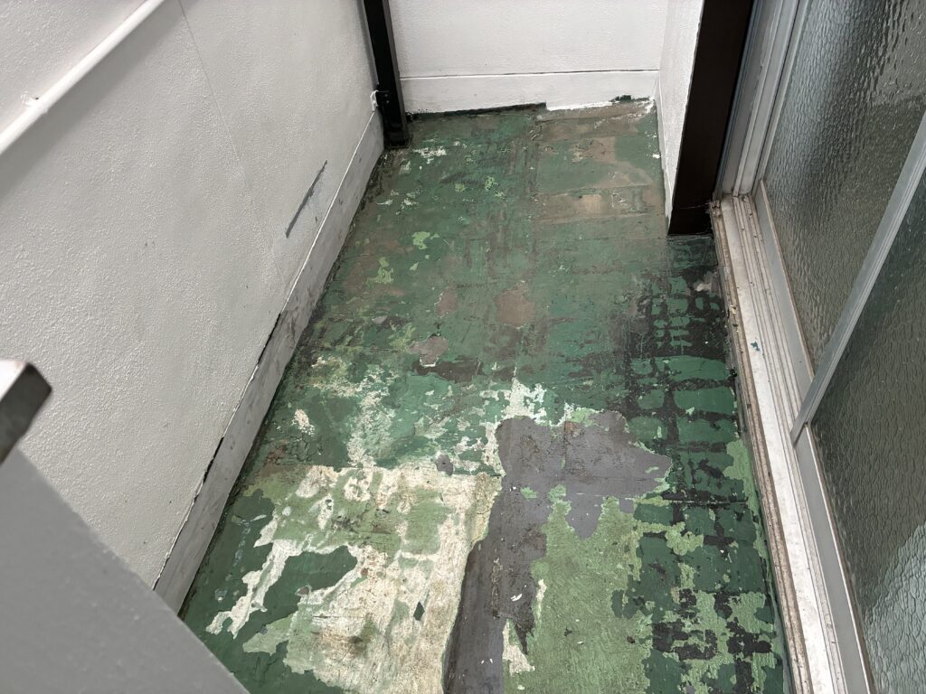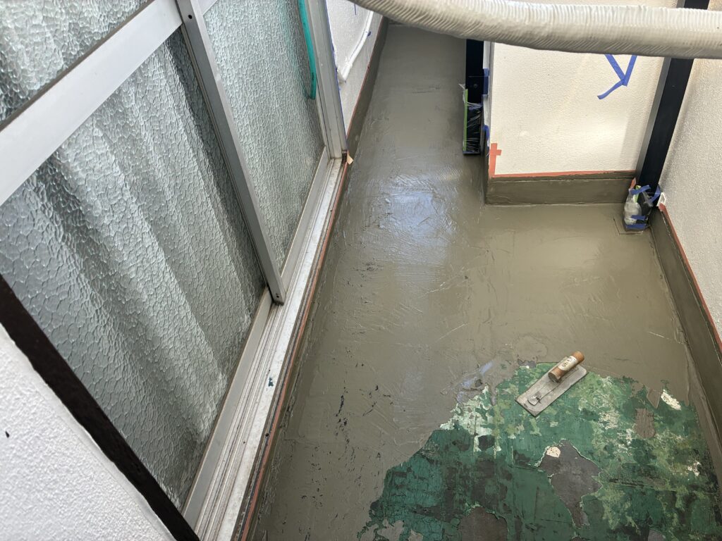 バルコニーの防水工事に向けた下地調整作業を行いました。