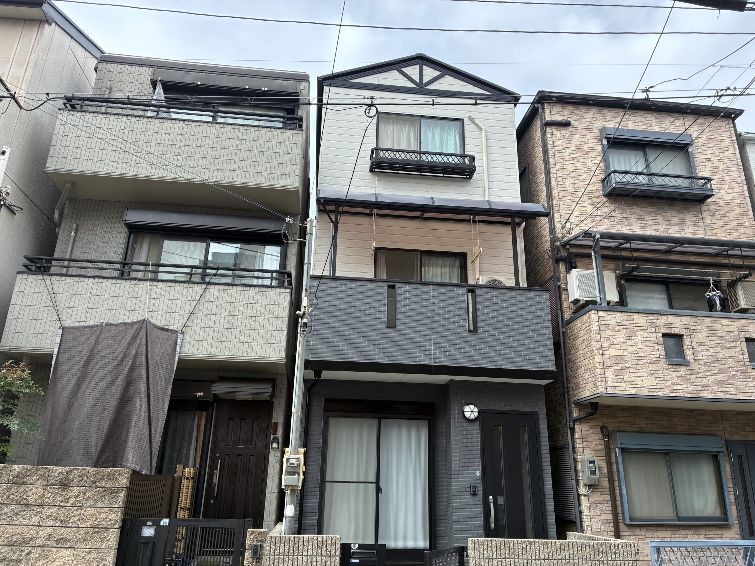 長田区|築20年ダークグレーとアイボリーのツートン塗装|高級感溢れる屋根外壁塗装工事