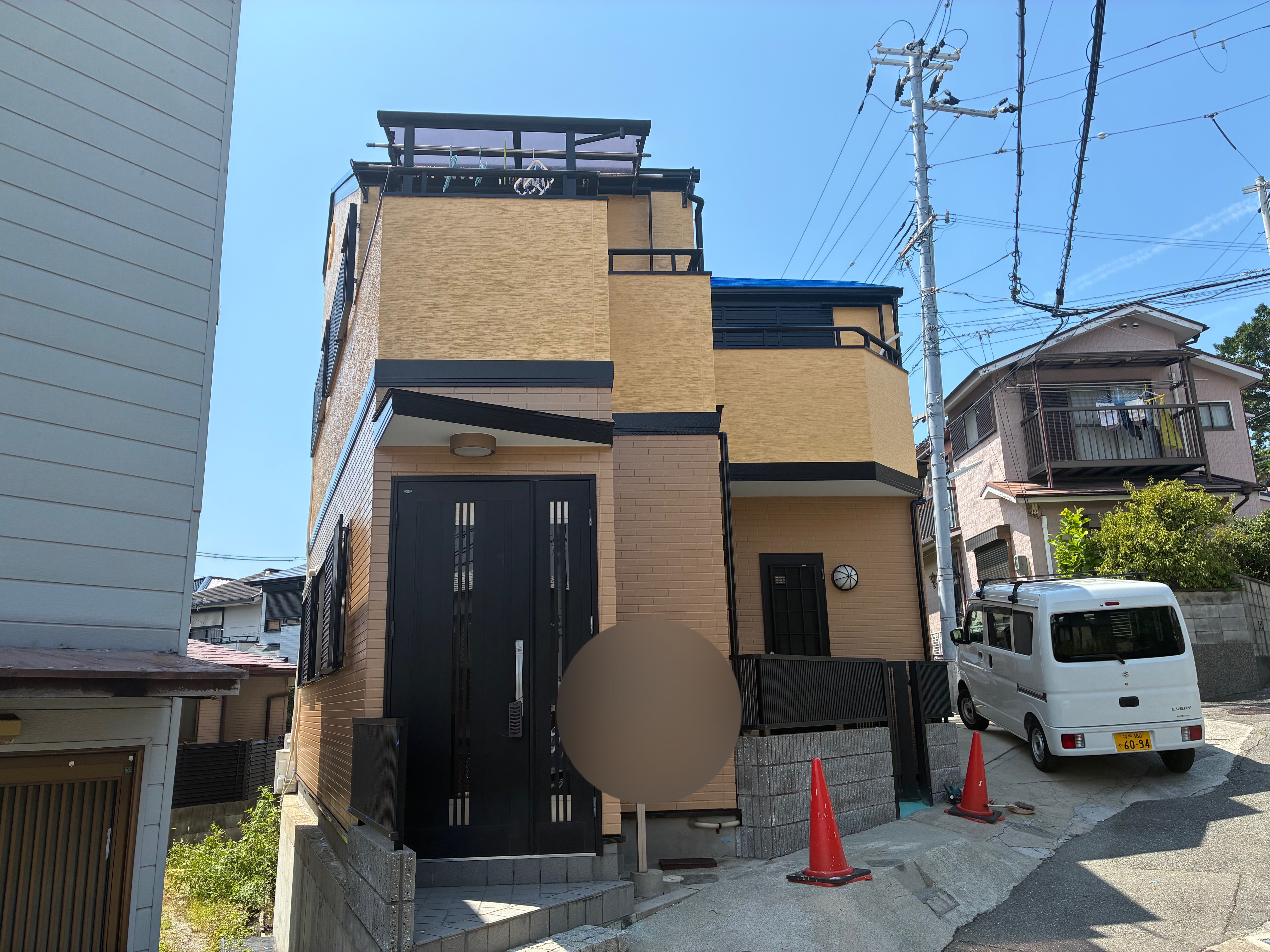 「U様 この度は、まごころ塗想をご信頼いただきありがとうございました。前回の外壁塗装工事では、クリア塗装が施されていましたが今回は、色をガラリと変えてお家のイメージチェンジ大成功でしたね♪奥様の配色が実現した外壁塗装でした。今後も責任をもって見守っていきますので末永くよろしくお願いいたします。また、何かございましたらご連絡ください。」 代表親方 濱本隼