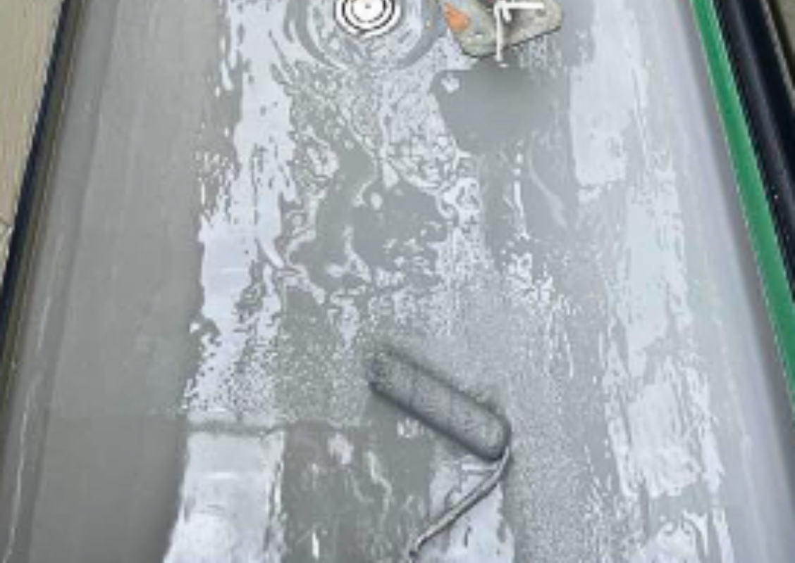 そして、最後の仕上げ塗りです。防水工事におけるトップコートの役割としては、ウレタン二層目で作った防水層の”保護”をするという役割です。 そのため隅々まで塗る必要があります。