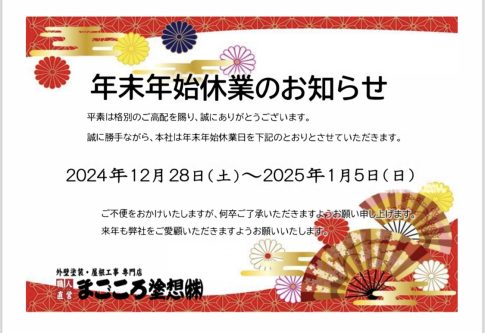 新年あけましておめでとうございます。今年もまごころ塗想をよろしくお願いいたします。