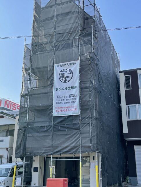 現場親方ブログ2021年11月19日 こんばんは!代表の濱本です。 先日着工しました 長田区M様邸 養生がおわり 外壁下塗り、軒天塗装中です! 痛んだ外壁をしっかりと 専用塗料で隠蔽していきます! 塗料は、スケスケに塗っても意味があり...