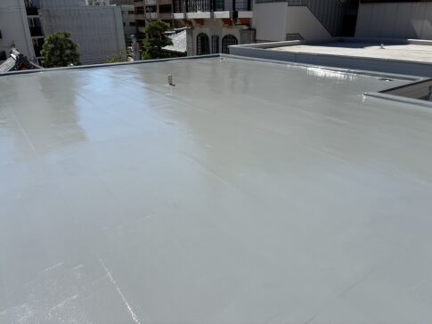 施工事例屋上防水工事 ウレタン塗膜防水 密着工法 屋上防水工事をおこないました。 経年劣化による、傷んでしまった既存防水シートをウレタン塗膜防水でしっかりと表面を保護し雨漏れ対策バッチリです! まごころ塗想は、【塗装屋】ですが防...